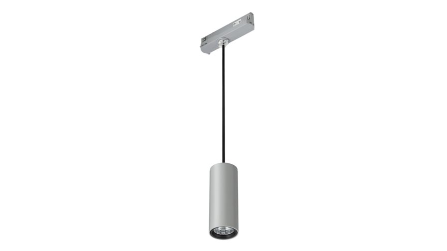 Polykarbonat, Grå, Pendel, Strømforsyningsenhed (Tænd/Sluk), 1200 lm, 9.7 W, 124 lm/W, PremiumWhite, 3000 K, (0.422, 0.386), CRI>90, Højreflektiv metalreflektor, mellemstrålende 20-40 grader, Klar, Glas, IP20 | Fingerbeskyttelse, IK02 | 0,2 J, standard, Sikkerhedsklasse II