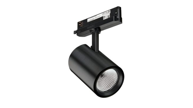 Polykarbonat, Sort, Trådløs driver - Klar til Interact-systemet, 1900 lm, 21 W, 90 lm/W, 2200 K, (0.457,0.385), Højreflektiv metalreflektor, mellemstrålende 20-40 grader, IP20 | Fingerbeskyttelse, IK02 | 0,2 J, standard, Sikkerhedsklasse II, 3C-skinne