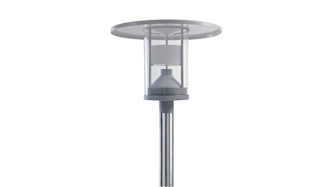 Urban road & street light, Aluminium, Grå, Mastetop til diameter 60 mm, Strømforsyningsenhed, regulering, Konstant lysudbytte og DynaDimmer med faste forindstillinger, version 6, 1380 lm, 18.4 W, 75 lm/W, 3000 K, (0.4338, 0.4030) SDCM <3, CRI80, Symmetrisk, IP65 | Beskyttet mod støvindtrængning, stænktæt, IK10 | 20 J, modstandsdygtig over for hærværk, Sikkerhedsklasse II, Standardniveau for sikring mod spændingsudsving, 4,0 m kabel uden stik, Løse ledere/kabler